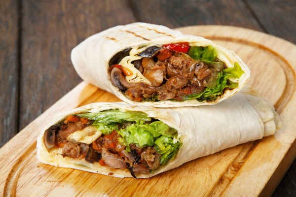 Burrito with carne asada, fried beans, lettuce, pico de gallo, chipotle sauce and cheese.